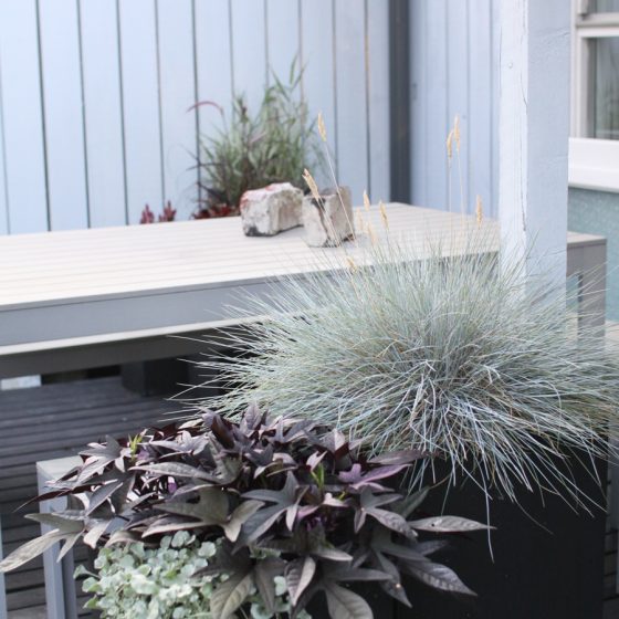 Patiolla on myös suunnitteilla useita korkeita ruukkuja, joilla vehreyttä on helppo tuoda lisää.