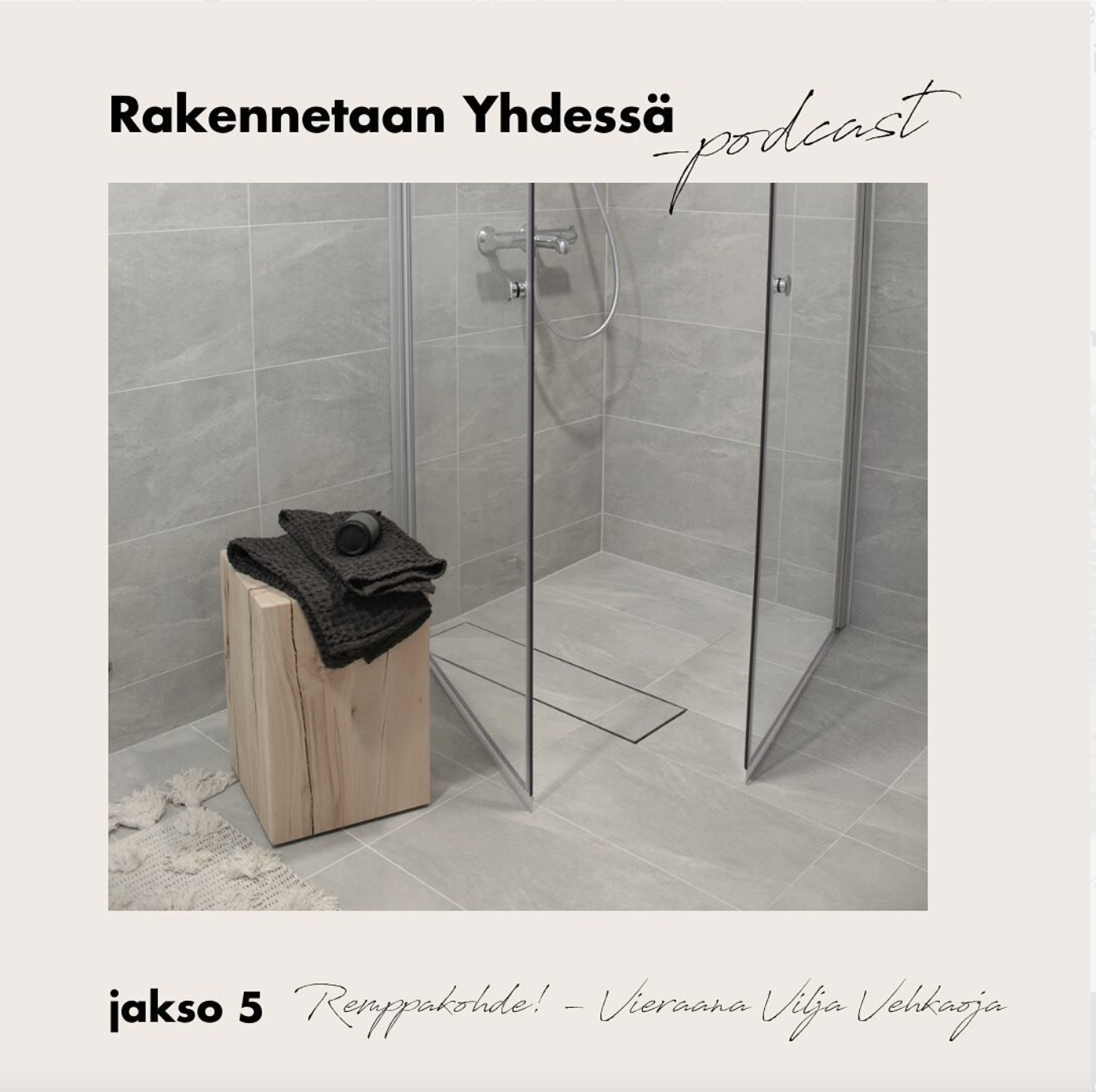 Pääsin loppuvuodesta puhumaan Rakennetaan Yhdessä -someyhteisön podcastiin kodeista, remontoinnista ja remontin suunnittelusta. Vietimme studiossa juontajaparin kanssa todella hauskan 40-minuuttisen, jossa oli naurua, oivalluksia ja rehellistä puhetta remontoinnista. Keskustelu pyöri erityisesti kylpyhuoneremonttini ja siinä kantapään kautta löydettyjen hyvien ratkaisujen ympärillä.